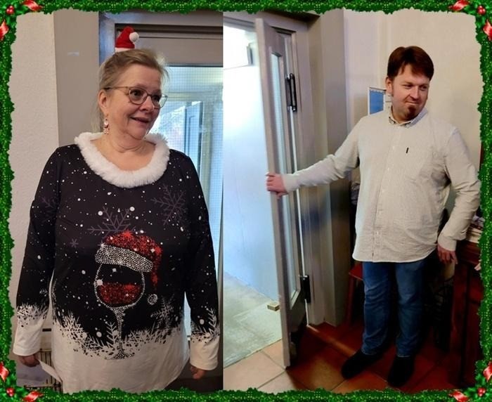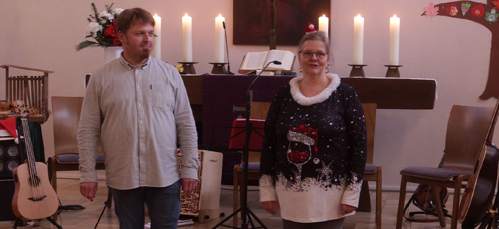 … obwohl es ja richtiger heißen müsste: „Macht auf die Tür …“, denn Michaela Hagelstein und Pfarrer Michael Bolz öffnen für alle Gäste die Tür, die beim Seniorenadvent eine schöne Zeit mit anderen Gemeindemitgliedern erleben möchten.